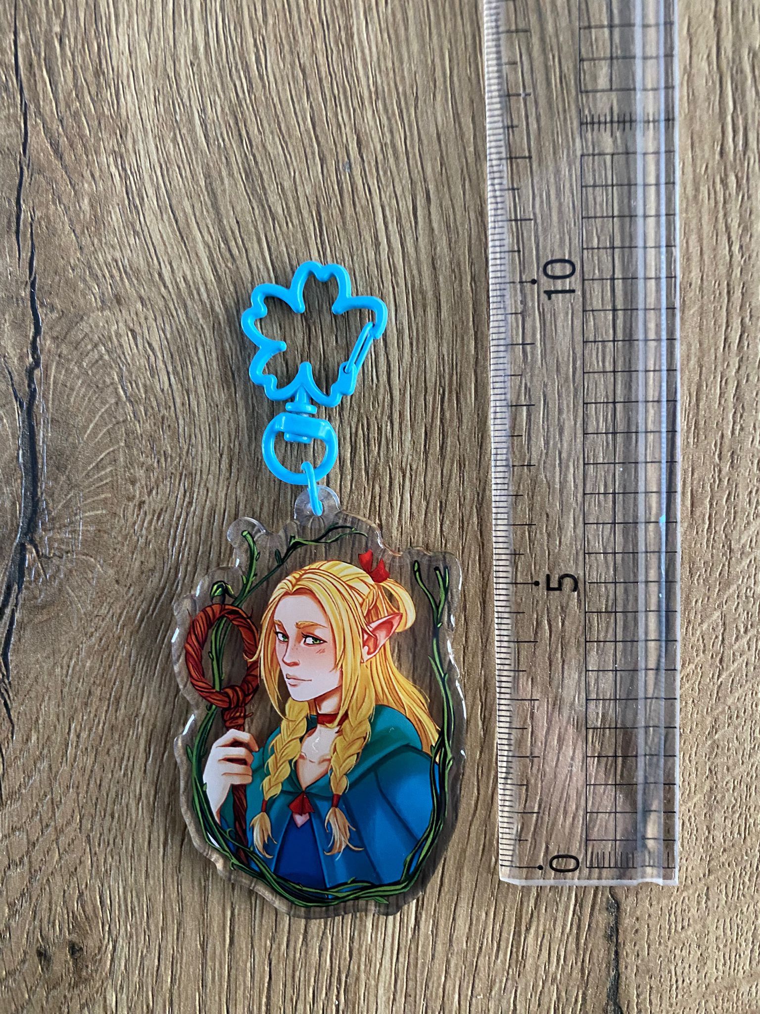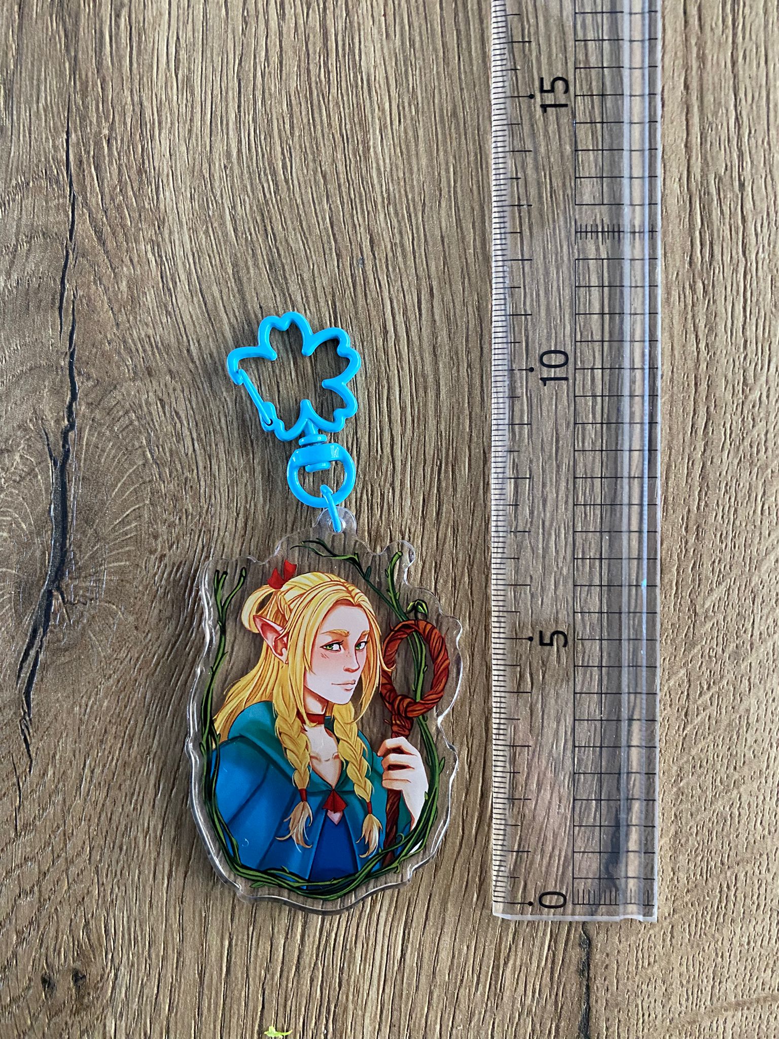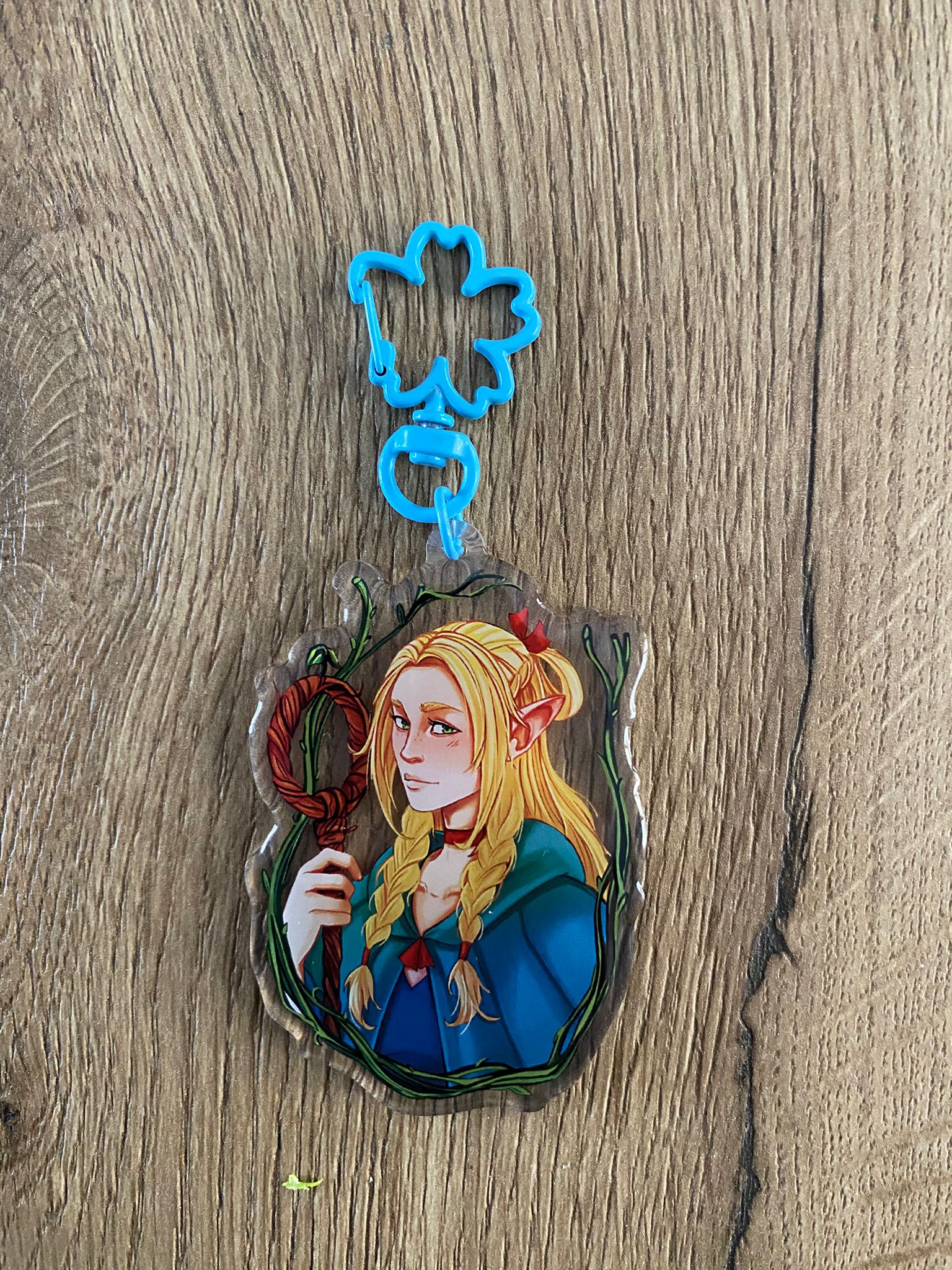 Marcille is één van de hoofdpersonen van Delicious in Dungeons Deze sleutelhanger heeft een sakura clip en is afgewerkt met een epoxy beschermlaag. Deze keychain is dubbelzijdig maar met dezelfde tekening. De sleutelhanger is exclusief clip ongeveer 5,5cm groot.